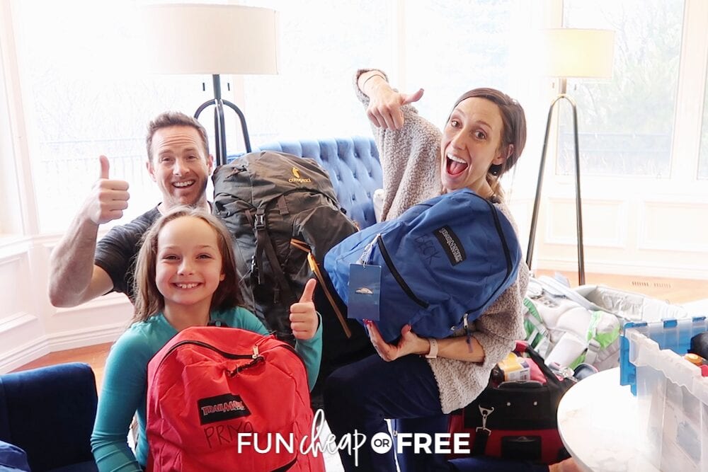 Pack an emergency bag for each member of the family with things like