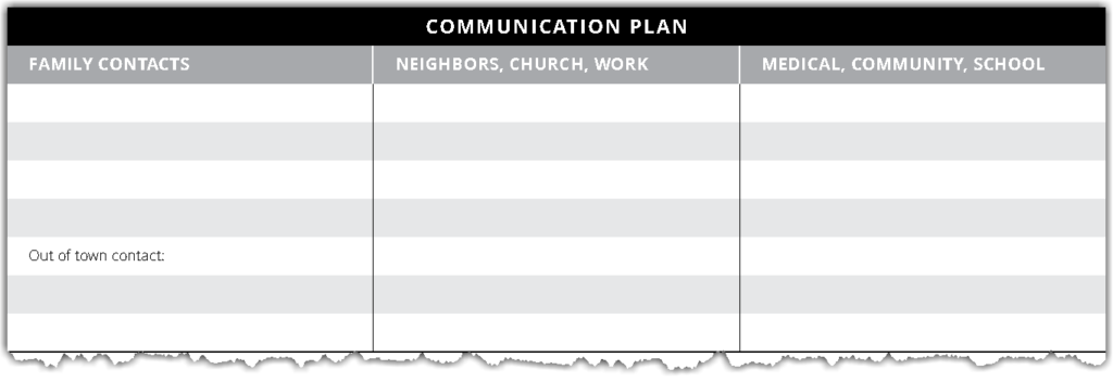 Create a communication plan for contacting people in an emergency. It’s good to have a list of family members, friends, neighbors, Church leaders, and community resources. Consider memorizing phone numbers in case your contact list is unavailable. Plan other ways to make contact if you can’t make a phone call. This might mean texting, instant messaging, or posting on social media.