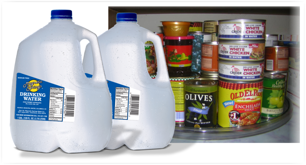 Having store of food, water, and non-food items like toilet paper, soap, and other sanitation supplies, are essential considerations. We should have a supply of non-refrigerated canned foods, as well as baby formula for those with infants/small children. One gallon of water per person per day for drinking, food preparation, and sanitation,
