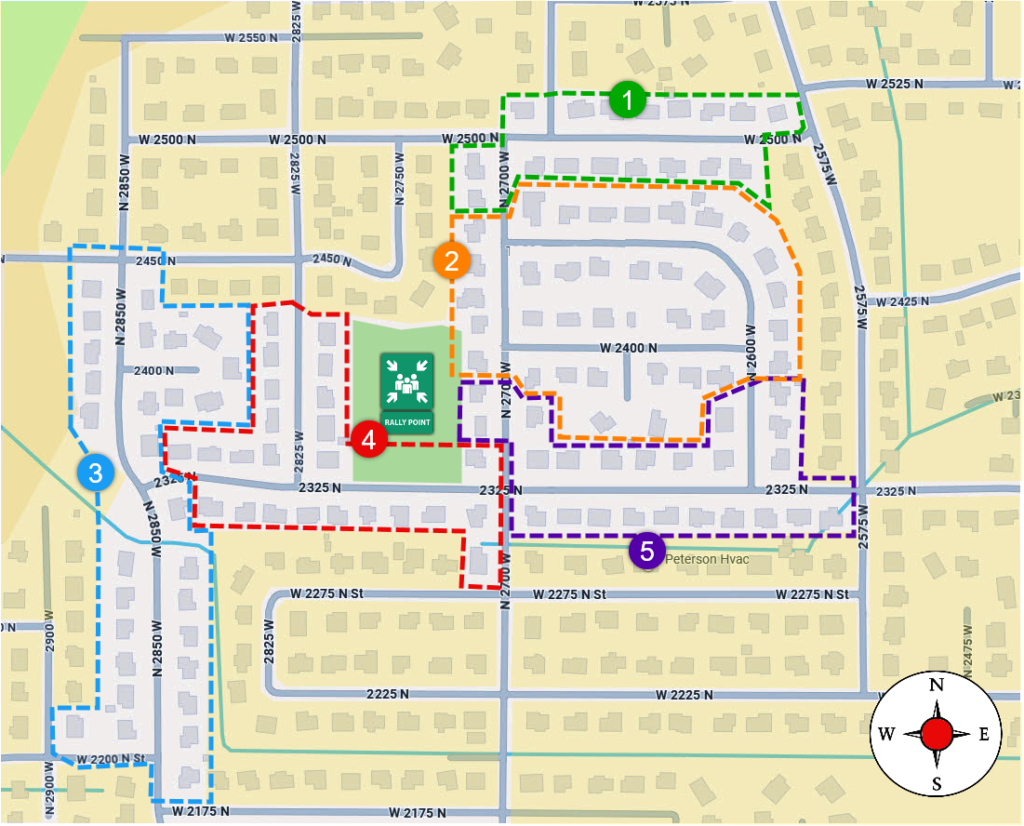 Each Block has a captain. When a disaster occurs that breaks down normal digital communication, the Captains (along with a companion) will do a walk through their assigned neighborhood block(s) to determine the status of all their block members. Block members with FRS/GMRS radios can assist their Captains by providing their status and putting a colored card visible from the street in front of their home.